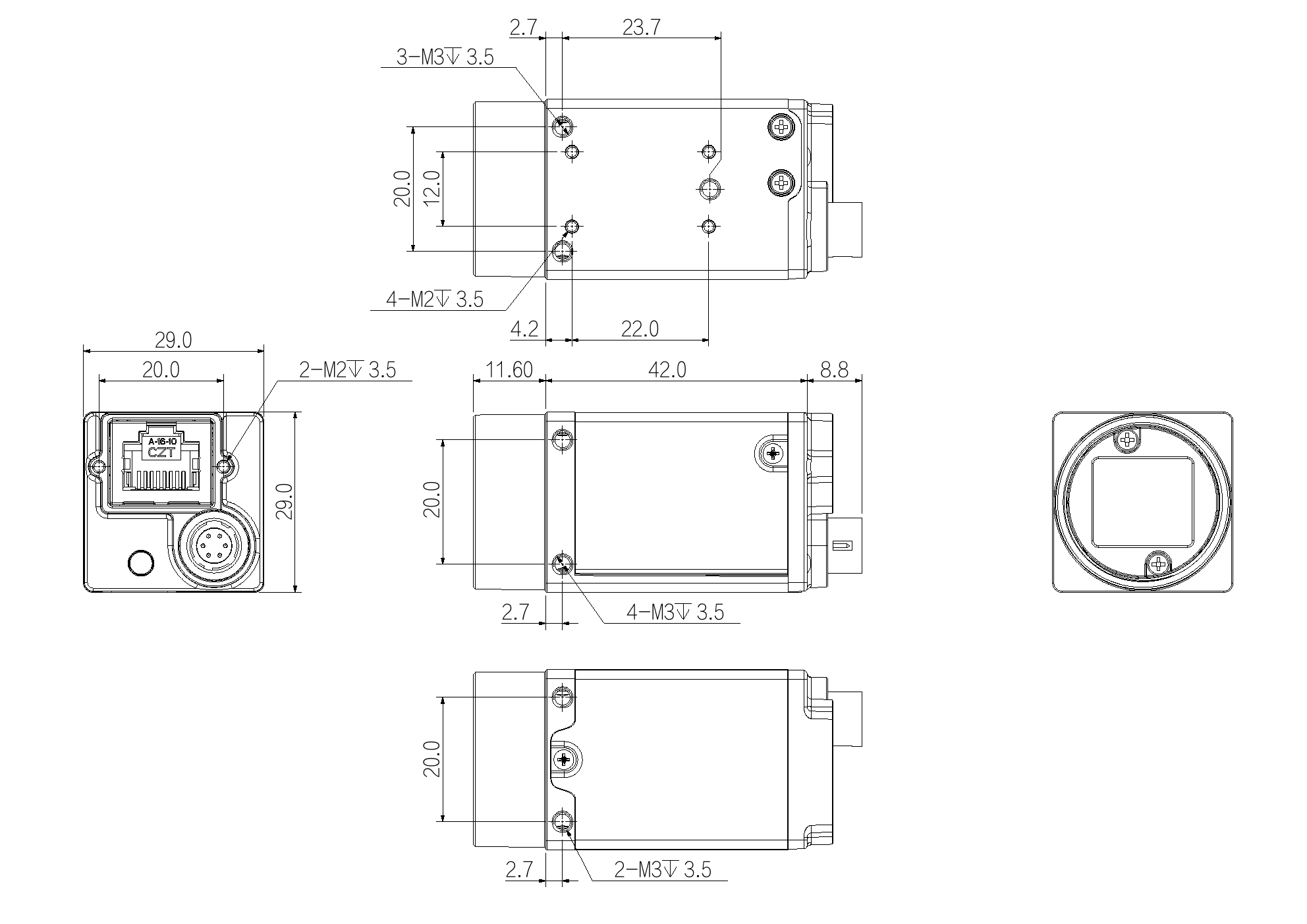 Product Dimensions 29 mmx29 mmx42 mm (not including lens mount and rear case connector)